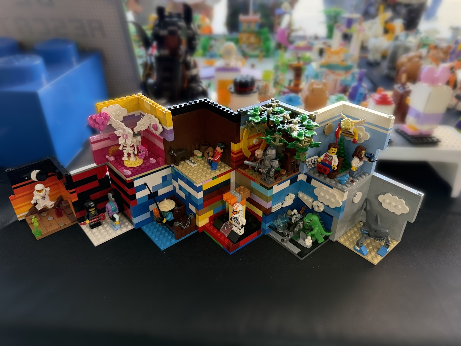🌟 Como segunda dinámica grupal en la historia del club, los coleccionistas armamos hábitats de minifiguras con temática libre de manera individual, y ya en la exhibición los juntamos todos para formar un colorido paisaje que expresó la creatividad de Baja LUG en equipo.